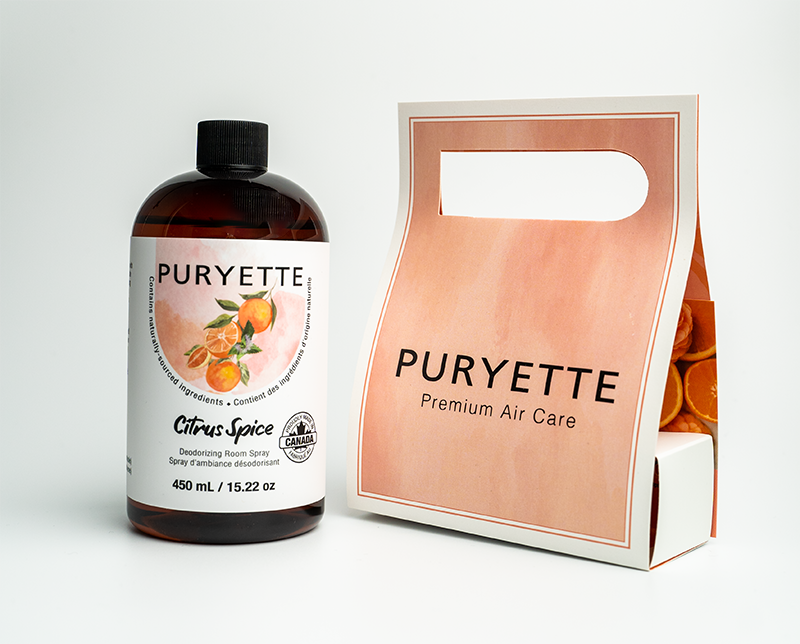 After the success and amazing feedback of our first formula, we got to work on perfecting other great odor eliminators. Enter Citrus Spice – a highly effective formula made with the best ingredients including proprietary odor elimination technology and essential oils of citronella oil, orange oil and cornmint oil. Not only is it a safe & scientifically-proven formula, we’re proud to say that Puryette Citrus Spice is UL Ecologo certified for reduced environmental impact.